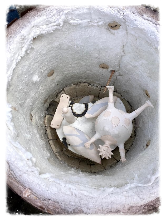 Inmiddels ben ik overgestapt naar keramiek. Ik beschik over twee keramiek ovens en twee Raku-ovens. Toch blijf ik geïnteresseerd in ander materiaal. In 2020 heb ik een project geleid waarbij we met 30 vrijwilligers een straatbank hebben beplakt met mozaïeksteentjes.